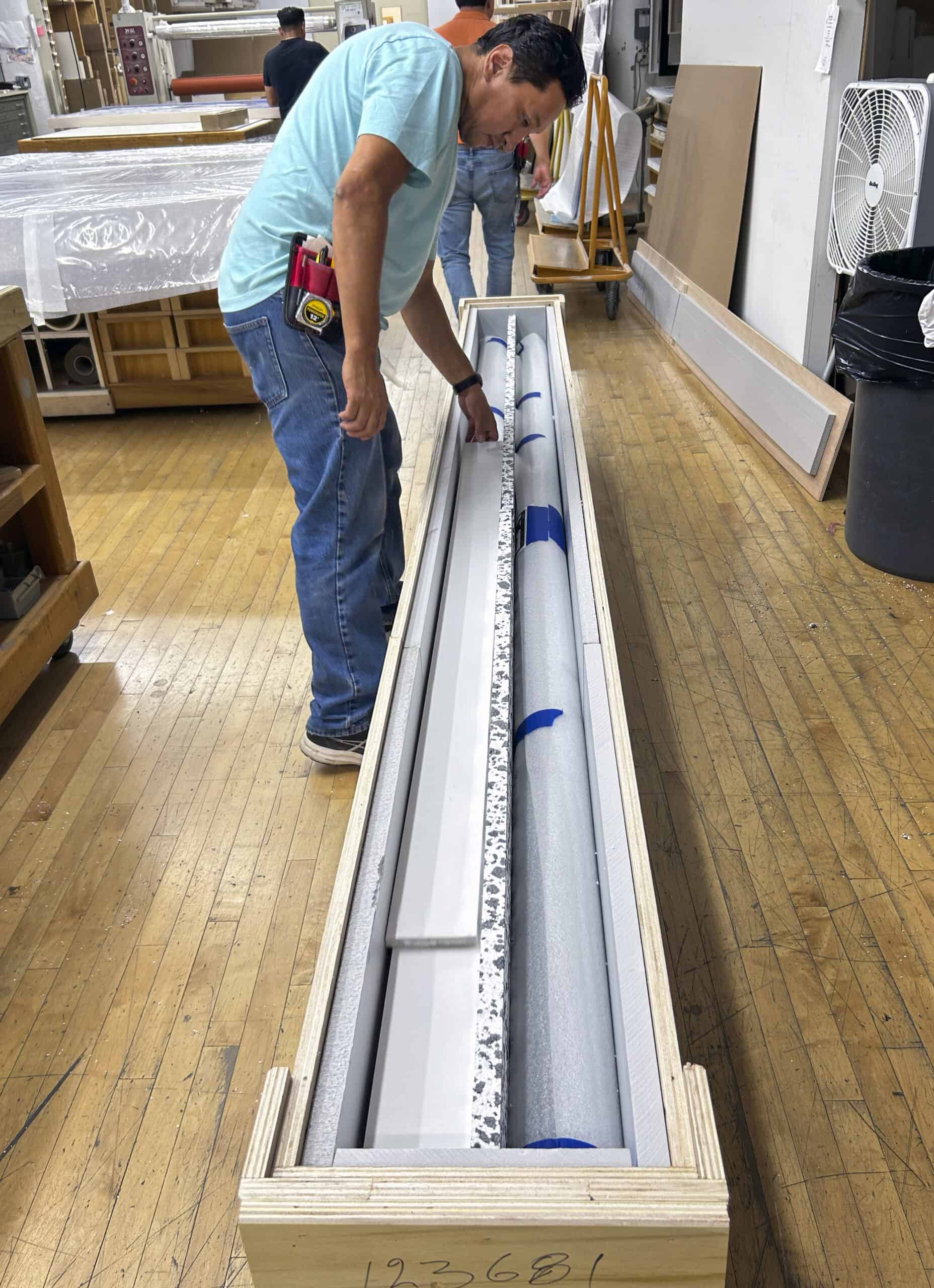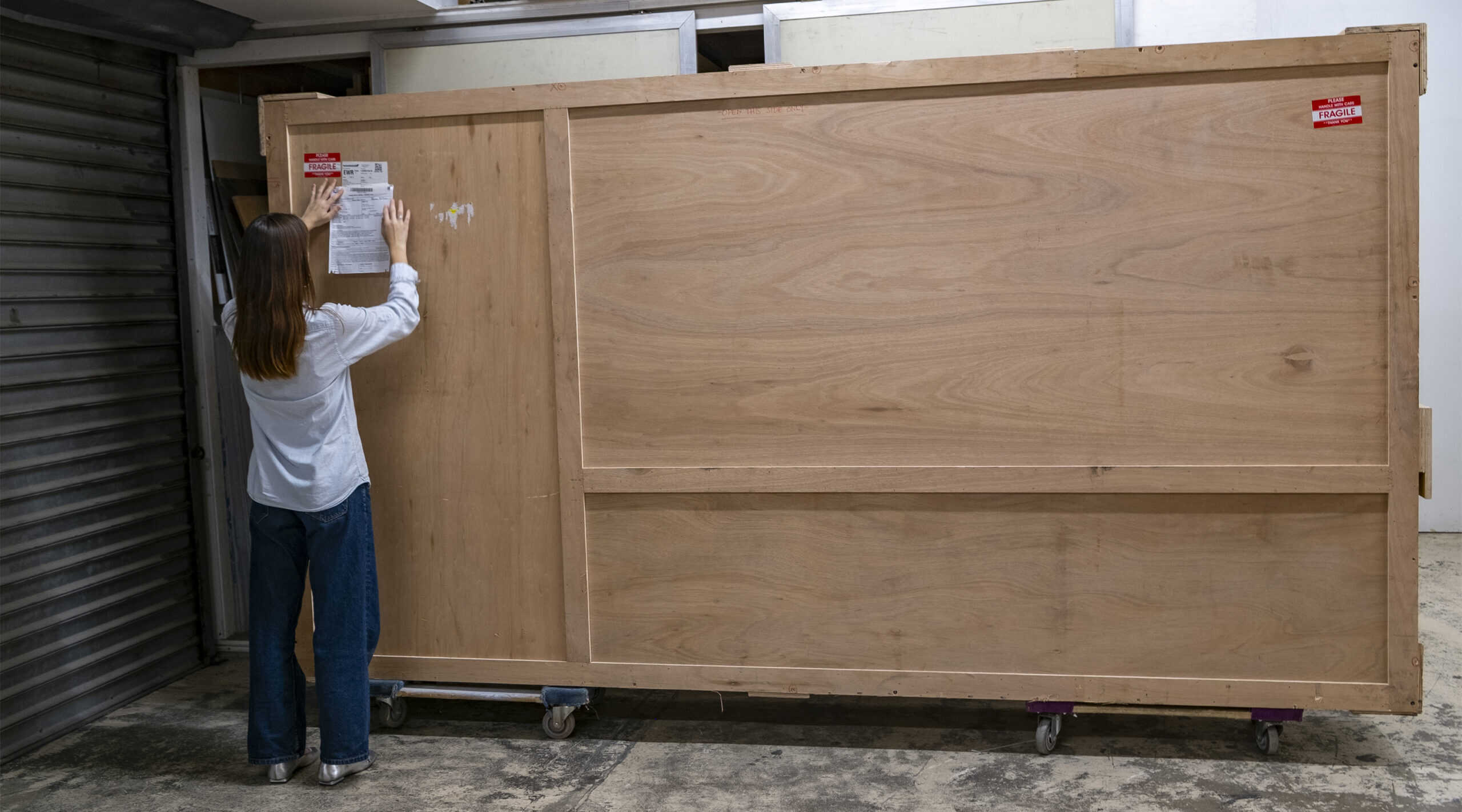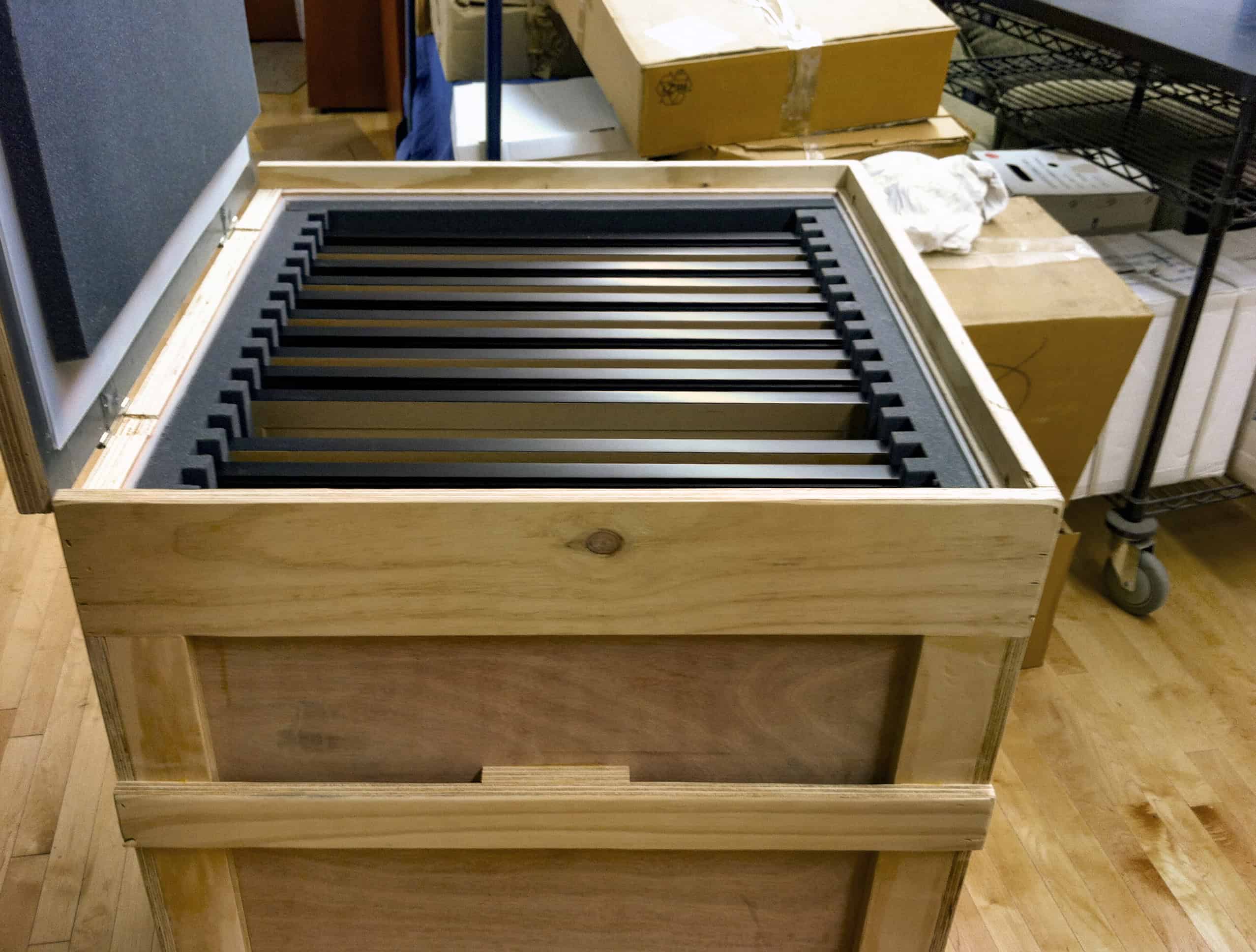 Laumont designs and build crates on a custom basis to protect your artworks during transportation or long term storage. Crates may be ordered for any artwork of any form, to suit any need. Our standard crates are made of regulation birch plywood with sturdy corners, reinforced edges and custom handles. They are also built snug to the wrapped mounted or framed artwork. We safely pack and build the crates in-house for shipments to clients, museums, galleries and art fairs, both in the US and overseas.