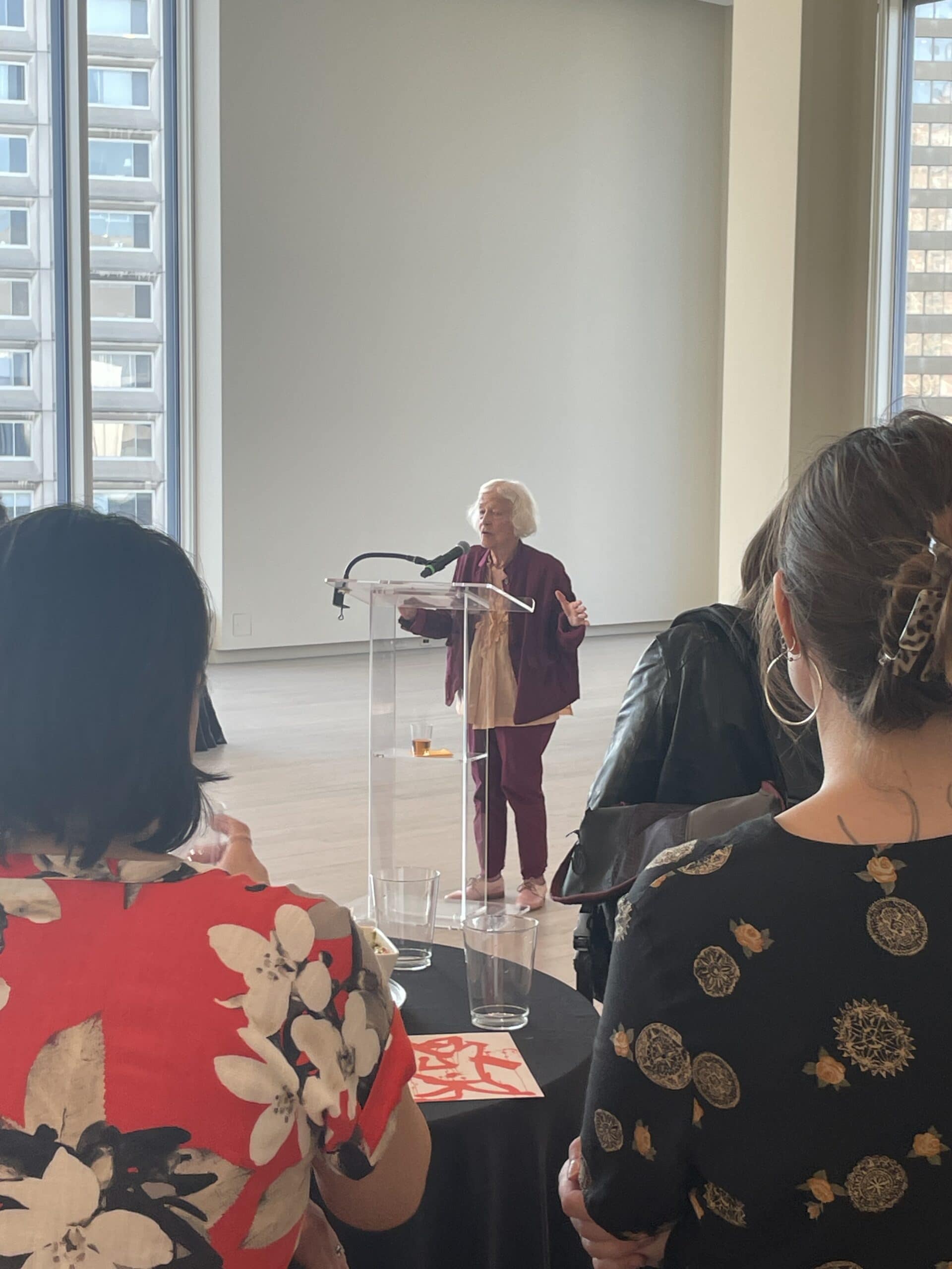 The fine art UV prints prompt reflection on the marine environments Jonas references and their connection to the academic foundations that shaped her career. Joan spoke briefly about her time at Columbia and encouraged all artists to “keep making”.