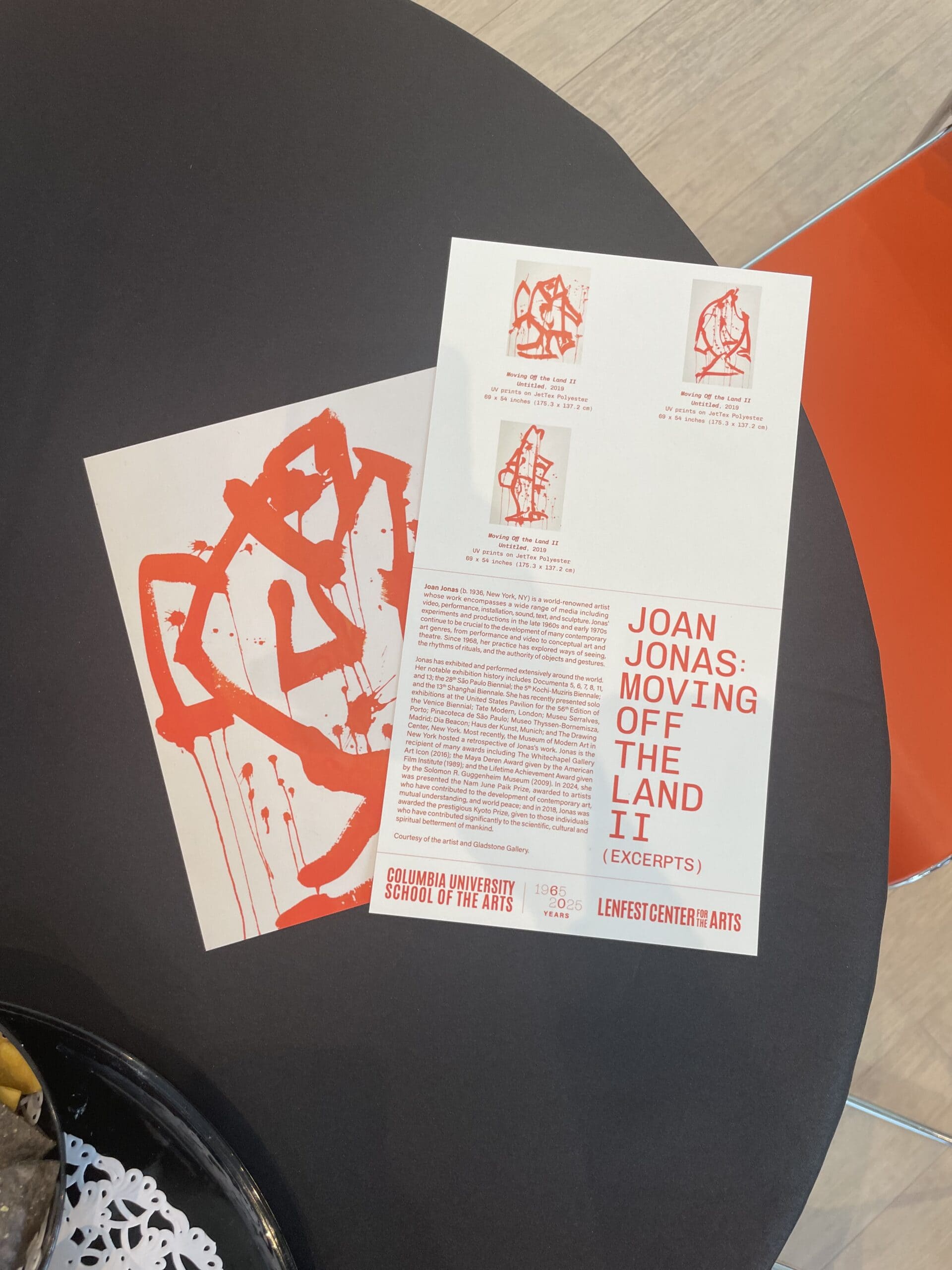 Joan Jonas: Moving Off the Land II (Excerpts) at the Lenfest Center for the Arts at Columbia University in Harlem. On view daily now through December 21, 2025, 11:00am – 5:00pm, and whenever public events are taking place at the Lenfest Center.