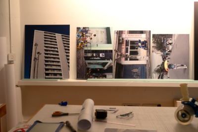 “Gazing” is composed of over 50x images UV printed direct to Dibond and displayed using a custom aluminum c-cleat hanging system. Translated from Mandarin, Rene speaks about his photography process, “I tried to capture images with hidden narratives, and what the hidden story is, depends on the audience.” Many of the images in the show are photographs taken over the course of 25 years when Balcer lived in and visited China. Other images include palm trees and street scenes from California.